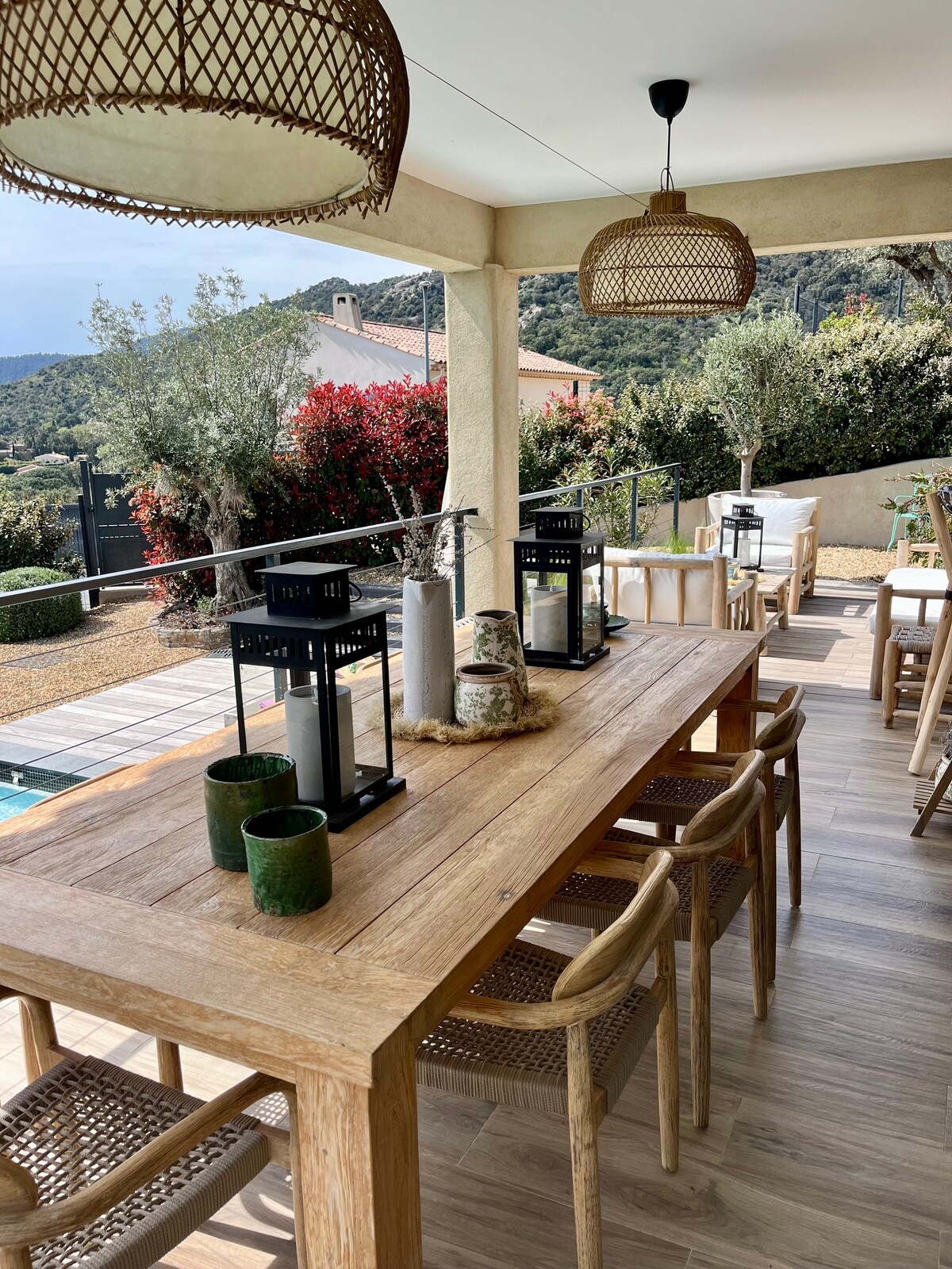 Maison Bambou - чудовий будинок для відпочинку макс. 6 р. Ця половина подвійного помешкання ділить басейн із Лор 'є Роуз. Обидва мають власну обідню терасу, а навколо басейну достатньо місця для насолоди. Доставлено та мебльовано на початку 2024 року. Завдяки травертиновій підлозі та світловим кольорам сонце світить як зовні, так і всередині. Бамбу тихий, але розташований в центрі Плана-де-ла-Тур, недалеко від жвавої вулиці. Тропе та Сент. Максим із блакитним морем і прекрасними пляжами.