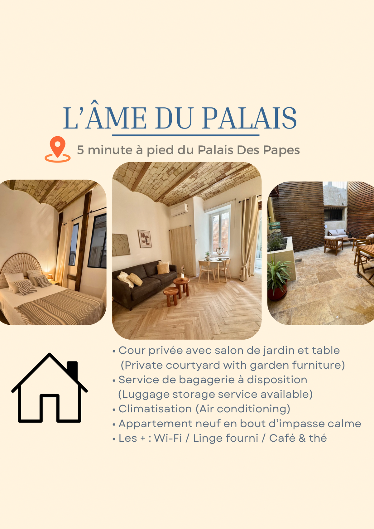 Приємна мебльована квартира, що складається з основної кімнати, з внутрішнім двориком, розташована в тихому районі, межує з великим полем і знаменитими виноградниками Шатонеф-дю-Пап. Безкоштовна парковка, автобусна зупинка за 250 м. Станція TER за 10 хв. від центру міста Авіньйон - Ідеальне розташування для відкриття Провансу між морем і горами. Авіньйон, Оранж на автомобілі 20 хв. – Окуляри Confluence - Виставковий парк – Античний театр в Оранжі - Парк Спірю Монте – Wave Island Monteux - Відвідайте наші численні пам’ятки