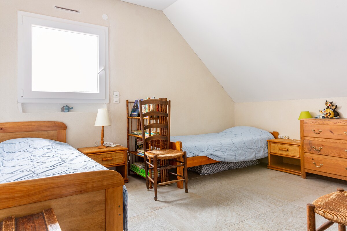 Приватний окремий будинок на південній терасі, закрита парковка на території, дуже тихий закритий сад, в 5 хвилинах від моря та магазинів, в центрі динамічного селища, розташованого в 30 км від Ванна та в 25 км від Порт-Навало, Арзон-ле-Пор-дю-Круесті, Сарзо, в 1 годині їзди від Нанта, в 1 годині їзди від Рошфор-ан-терра (вибране улюблене селище Францужен 2016). Численні походи(GR34) можливі пішки або на велосипеді з прокату. Можливість переправитися (на велосипеді) до Pencadénic (у сезон), щоб дістатися до Дамгана.