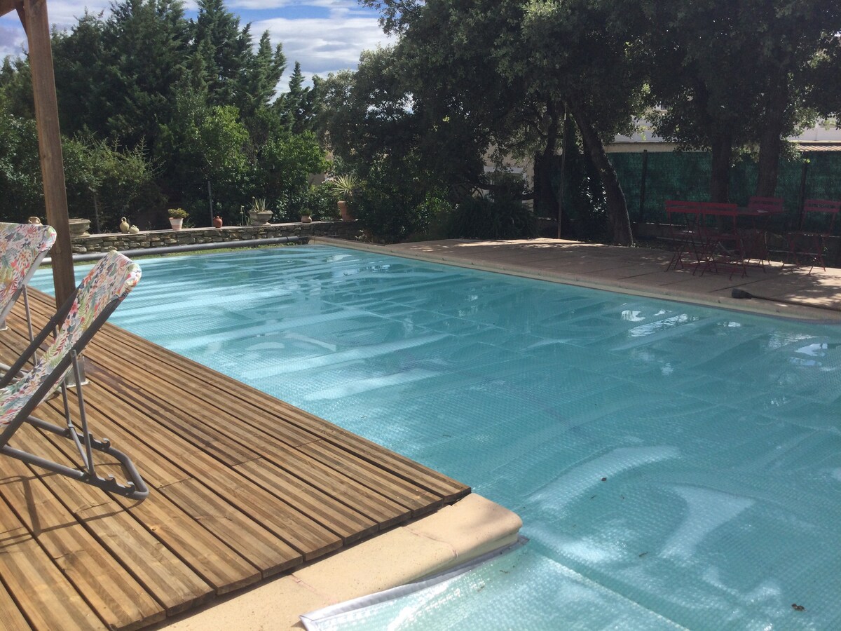 Mas Les Pins (на 2600м ²) має багату історію і є частиною церковного комплексу XII століття та старих винних погребів. Цей зелений ★★★★ рай знаходиться всього в 3 км від динамічного центру Монпельє (10 хвилин на трамваї) і в 10 км від Середземного моря. Із 2 чарівними спальнями, добре обладнаною кухнею, сонячною вітальнею, 2 великими терасами, щоб насолодитися аперитивом з видом на величезний сад та сосновий ліс та 12-метровий басейн із солоною водою, ви маєте все необхідне для відпочинку.