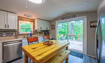 Відпочинок на березі озера, щоб назвати себе (принаймні, на деякий час). Цей двокімнатний мальовничий котедж із двома спальнями розташований на мальовничому котеджі приблизно на 250 футів на набережній, де відкривається вид на озеро з величезного екрана. Відкритий план поверху з повністю мебльованою кухнею, ліжками та повною ванною зробить цей відпочинок винятковим. До причалу, розташованого глибоко в лісі, можна дістатися крутою доріжкою або сходами, а також крутими дерев 'яними сходинками без поручнів. Глибина води на причалі неглибока.
