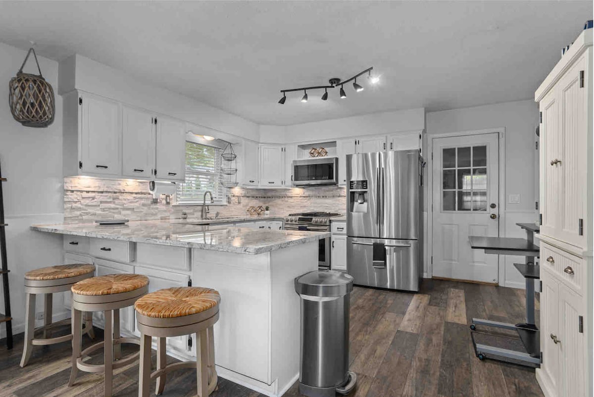 Великий, просторий будинок ідеально підходить для розміщення до дванадцяти осіб і розваг до двадцяти п’яти осіб. Один ліжко «king-size», чотири «queen-size» і повноцінне двоповерхове ліжко. Три ванні кімнати. Вітаємо собак! Мальовничий огороджений задній двір. Повністю укомплектована кухня. Величезна тераса з грилем для барбекю. Справжній дров 'яний камін, камін і дрова на території. Дві пральні машини та дві сушильні машини для прання. П 'ять концертів надшвидкого Інтернету. Шість смарт-телевізорів Wi-Fi. Повні зручності для немовлят/малюків. Кілька аркадних систем, кошики з іграшками, десятки настільних ігор та заходів.