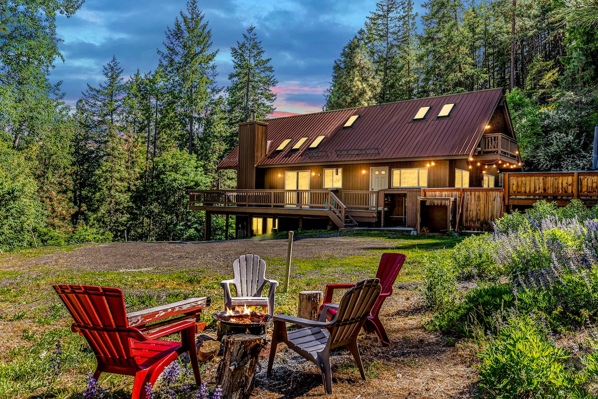 *Усамітнені, захоплюючі види на 13 акрів; 10 хвилин їзди до Левенворта, 40 хвилин до перевалу Стівенс. Гідромасажна ванна на 8 осіб, приватна задня тераса, барбекю, газове багаття, 2 домашні тварини; газове багаття, камін у приміщенні *Поруч із поїздом, якщо люди чутливі до шуму (поїзд не гудітиме) *Повністю обладнана кухня, світлий і відкритий планування; камін у приміщенні *Двоповерхове ліжко для дітей; настільні ігри, відеоігри, * стіл для настольного футболу