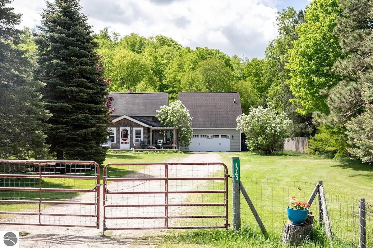 НОВИНКА ДЛЯ 2025 року: скандинавська гідромасажна ванна! Наша ферма - ідеальний відпочинок від насиченого життя. Поєднання історичного фермерського будинку та сучасного стилю ми знаходимося всього в декількох хвилинах від піщаних дюн Сплячих ведмедів, Траверс-Сіті та історичного Фіштауна. Гостюйте в нашому котеджі на омолоджуючий тиждень із чудовими краєвидами та простим життям влітку або забронюйте для короткої подорожі під час кольорової екскурсії, зимових вихідних або сезону квітів.
