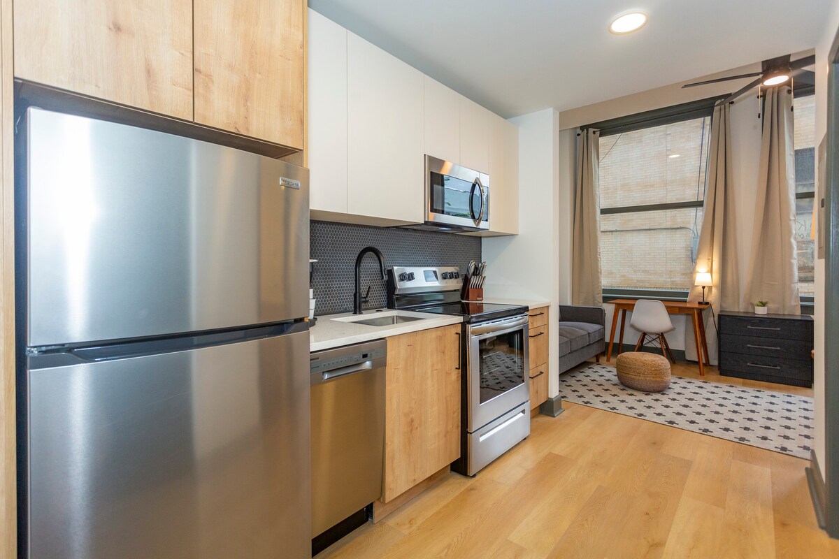 Незалежно від того, перебуваєте ви тут у справах, університеті чи розвагах, цей яскравий та просторий лофт добре підходить для приємного перебування. Це поліроване помешкання може похизуватися повністю обладнаною кухнею, власною ванною кімнатою та високими стелями з високими вікнами, які випромінюють багато природного освітлення. Вулична стоянка - це першочергове обслуговування. Однак безкоштовна парковка розташована на платній стоянці в задній частині будівлі. Крім того, ззаду пролягають залізничні колії, немає звуків рога, але є біла шумова машина.