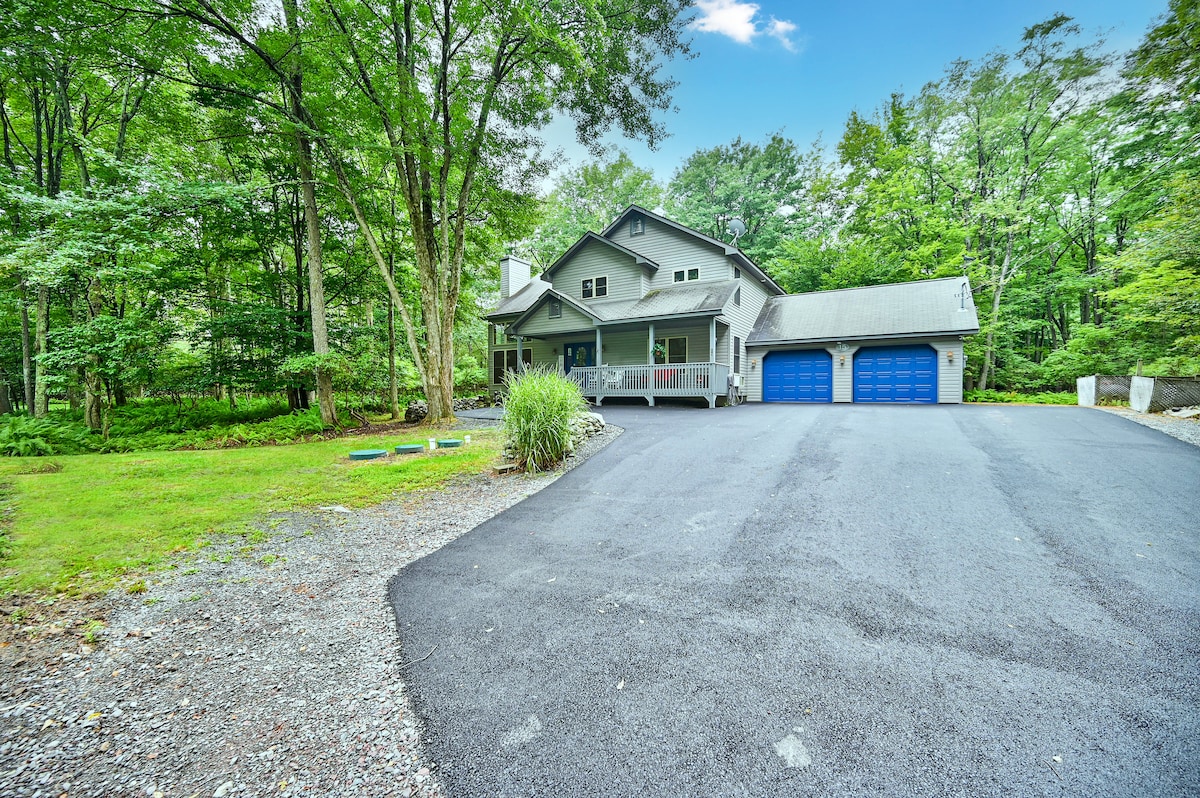 Ласкаво просимо до Idyllic Pocono, нашого продуманого шале для великих груп, які шукають епічний відпочинок біля озера. Наше шале займає 3 поверхи з зручностями, такими як ігрова кімната, кінотеатр, повністю обладнана кухня та кавовий бар з технікою SMEG, а також привабливий відкритий простір із критим патіо, 7-місцевою гідромасажною ванною, сауною та місцем для багаття, що забезпечує чудовий відпочинок у будь-яку погоду. Велосипеди(10), окремі байдарки(4), каяк у тандемі, каное, зарядний пристрій для електромобіля.