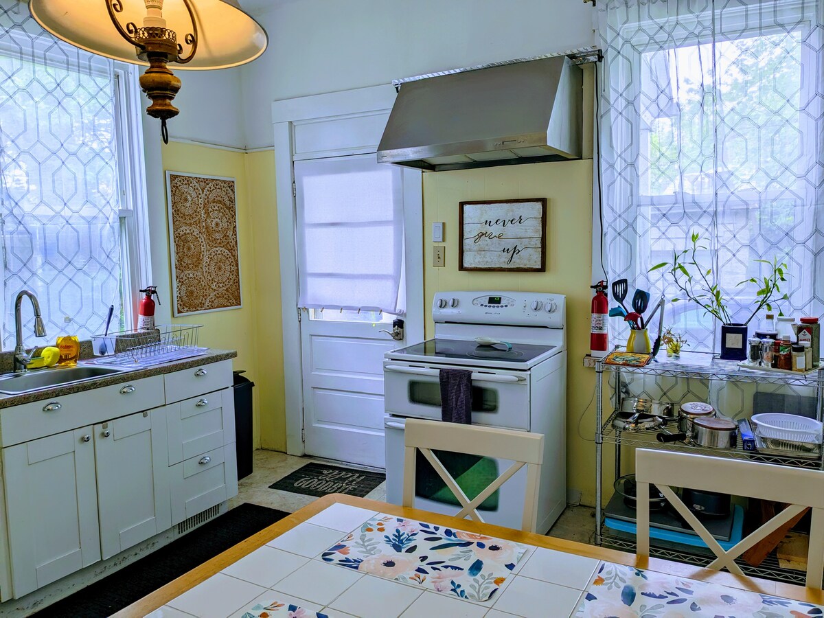 Насолоджуйтеся перебуванням у повністю оновленому історичному будинку з однією кімнатою менш ніж за дві милі від державного парку Рікетс-Глен. На верхньому поверсі розташовані дві окремі спальні, одна з ліжком king-size, а інша з ліжком queen-size. На першому поверсі є відкритий простір із повністю обладнаною кухнею, ліжком queen-size, вітальнею, повною ванною кімнатою, кімнатою для відпочинку та дошкою.