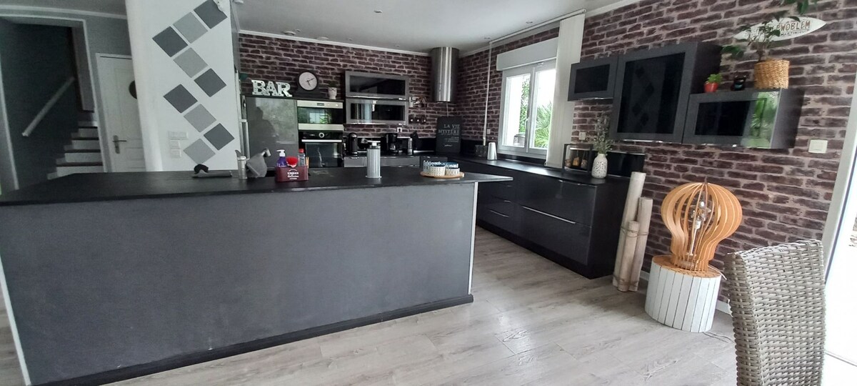 Центр села класифікується як будівля Франції. Ви будете спати в колишній пресі XVI століття. На першому поверсі з окремим доступом, вітальня з диваном-ліжком, окрема кухня. 1-го на мезонініні, спальні, душовій кімнаті та туалеті. Постільна білизна та рушники Парковка перед будинком. Аріан вітає вас за бронюванням, у своїй приватній професійній оздоровчій зоні, присвяченій масажу тіла та обличчя. Продуктовий магазин, хлібне депо, бістро з аперитивами, страви дня та бранч по неділях.