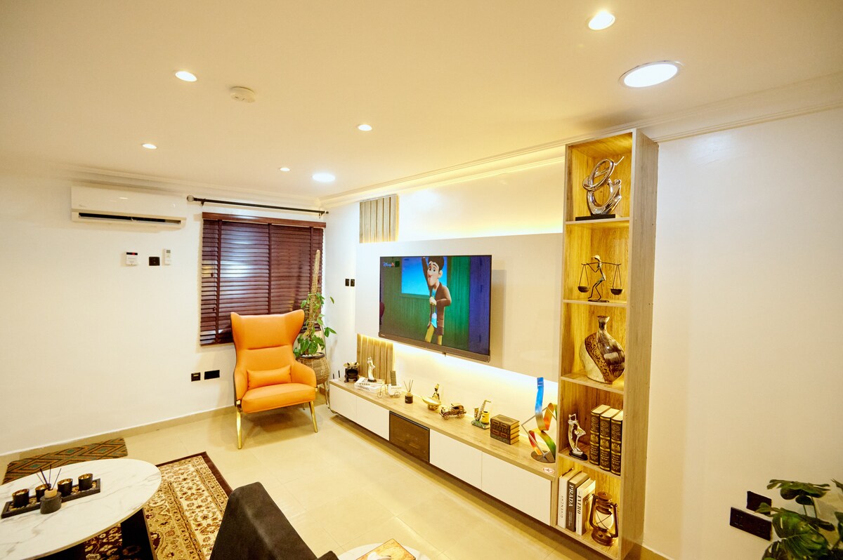 Добре мебльовані апартаменти в спокійній і добре безпечній обстановці (Lekki Gardens Phase 3). Прямо за бізнес-школою Лагуша (в пішій доступності) від дороги Леккі-Аджа. У кімнаті є власна ванна кімната з телевізором (з підключенням), холодильником, електричним чайником та приправами для чаю.
