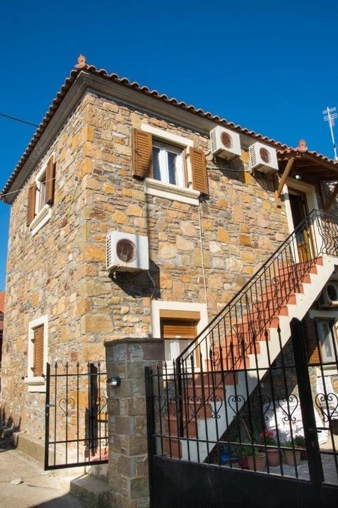 Unique and traditional stonehouse in the village Kontias ready to meet your needs Accommodates up to 5 people or more after communication 10 minute from airport 15 minute drive from mirina Easily accessible We are also able to accommodate group of families since there are 2 houses within the same yard