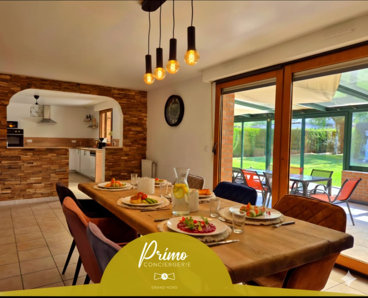 Чарівний будинок у центрі цього невеликого села всього за 20 хвилин від Лілля. Ідеально підходить для спокійного відпочинку. Повністю обладнана кухня (з кофемашиною Nespresso у вашому розпорядженні), пральна машина. Безпечна парковка для 2 автомобілів, закритий сад і мебльована крита тераса. Швидкий доступ до автомагістралі А1 (2 хвилини), супермаркет за 200 м. Поруч із полем для гольфу Thumeries та картингом Ostricourt.