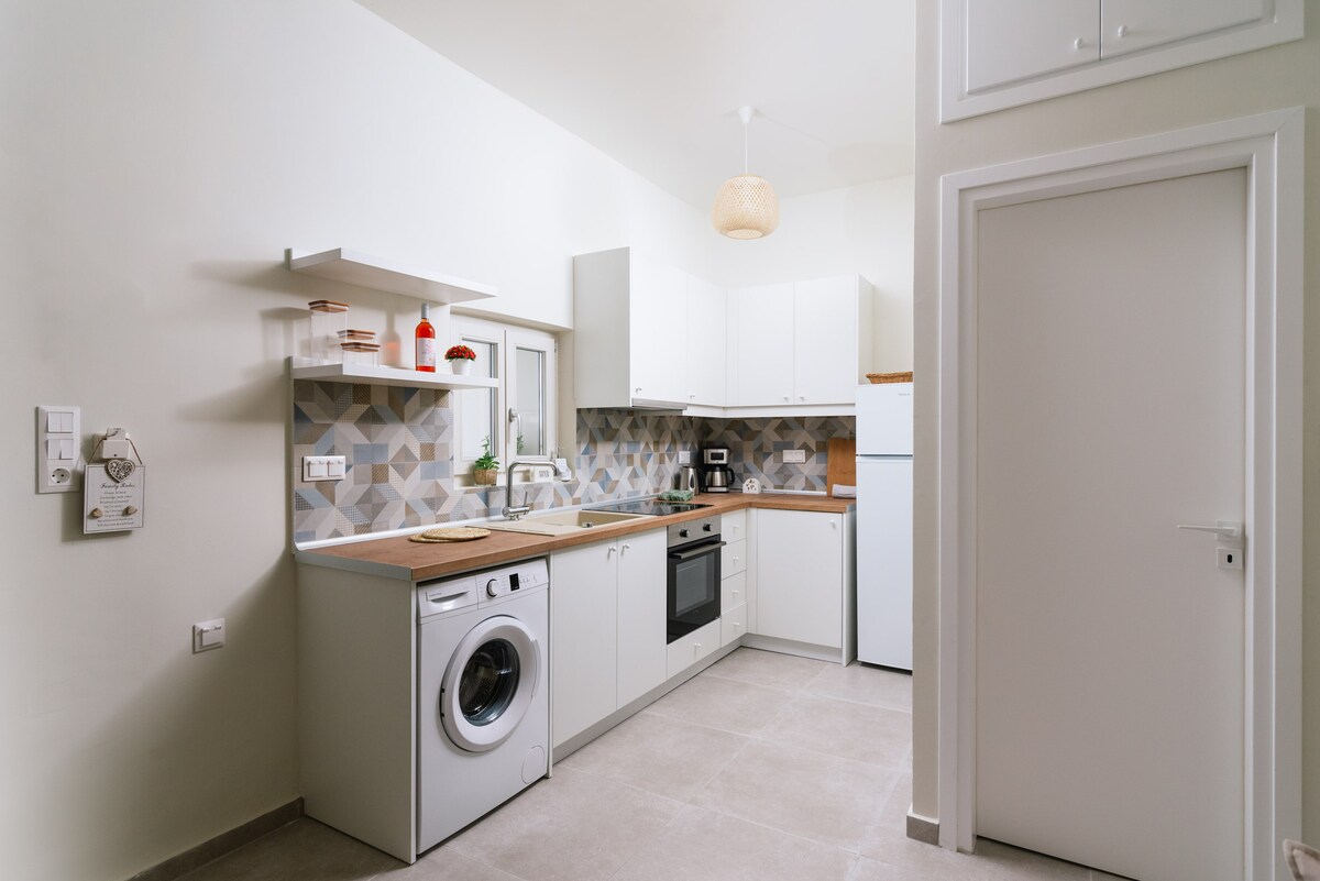 Цей будинок на сонячній енергії, оточений оливковими деревами та з захватывающим панорамним видом, не перестане вас здивувати! Кухня і вітальня не розділені жодною стіною, і це створює відкрите і комфортне середовище. Ми вирощуємо нашу їжу органічним шляхом і маємо 8 курей і 2 кіз, які забезпечують нас свіжим молоком і яйцями щодня. Тому не витрачайте свій час на переповнені курорти та нудні квартири. Приходьте до нас додому, познайомтеся з нашими чарівними козами та відкрийте для себе щось нове!