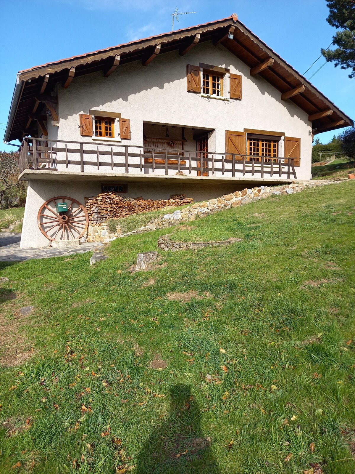Приходьте і підзарядіть батарейки в цьому прекрасному дерев 'яному шале з терасою площею 35 м2 з гідромасажною ванною та дивовижним видом на навколишню сільську місцевість. Менше ніж за 4 км після виїзду з шосе Les Salles (42), Le Chalet розташований між історичним селом Черв 'єр і селом Noirétable з його Casino de jeux, його водою та всіма місцевими магазинами. Запрошую вас слідувати за Chalet Yolo @chaletyolo
