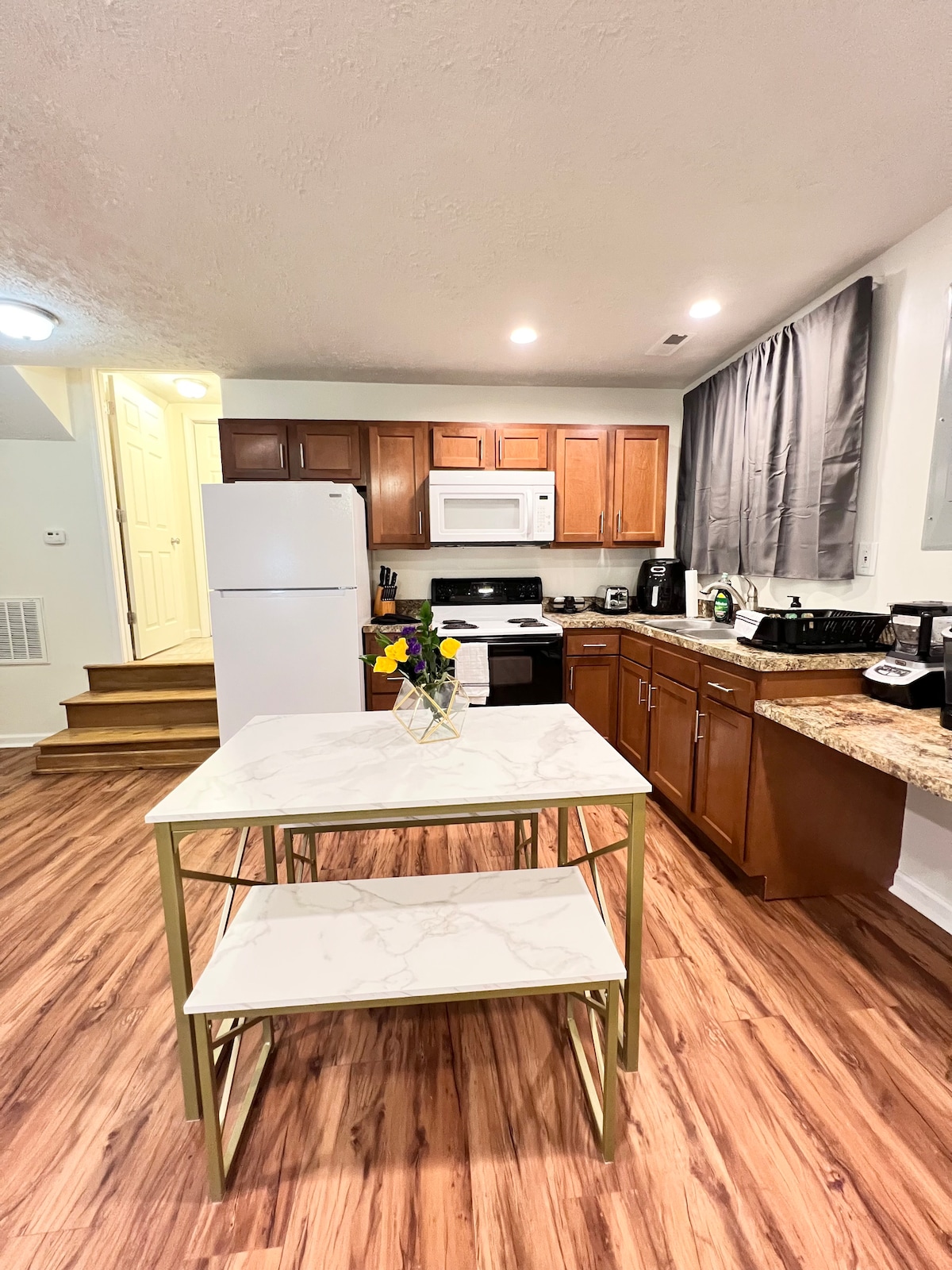 Ми дуже раді представити «Есмеральду»!Кожен дюйм цього помешкання був продуманий, щоб представити досвід висококласної повсякденної елегантності. Від заднього ганку, склеючих крісел до розкішного ліжка queen-size, комфорт був нашим пріоритетом номер один. Жодна деталь не була пропущена, щоб переконатися, що ваше перебування приємним. Ваш час тут залишить вас із тихою та чарівною атмосферою. Нещодавно додана гідромасажна ванна для вашого відпочинку.