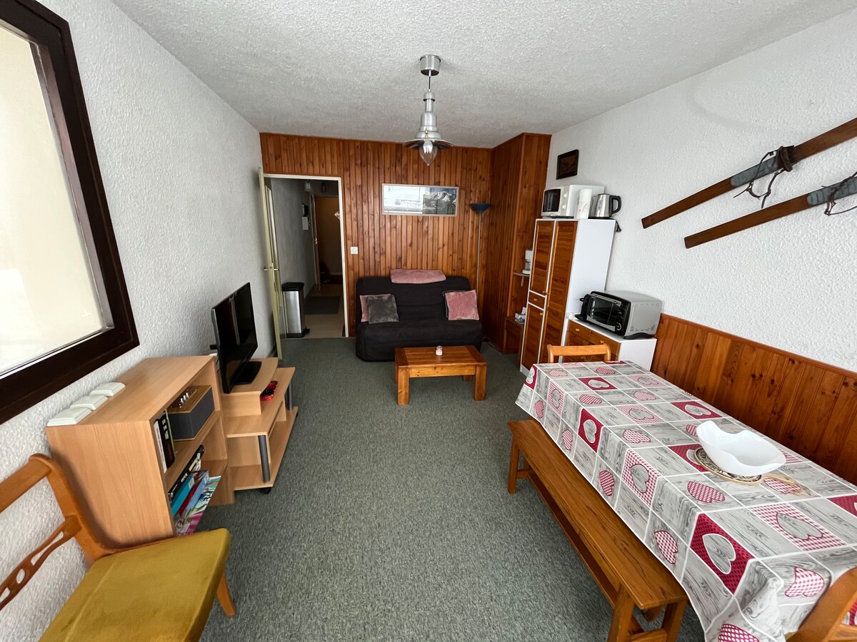 Charmant studio de 24 m², idéalement situé au pied des pistes, avec un casier à skis. Niché au dernier étage, il offre une magnifique vue sur les montagnes et se trouve dans une résidence calme et bien entretenue, équipée d'un ascenseur. À l'intérieur, vous trouverez un lit superposé, un canapé convertible pour 2 pers et un autre canapé convertible pour 1 pers, parfait pour accueillir famille et amis. La sde a été récemment rénovée, ajoutant une touche moderne à cet espace chaleureux.
