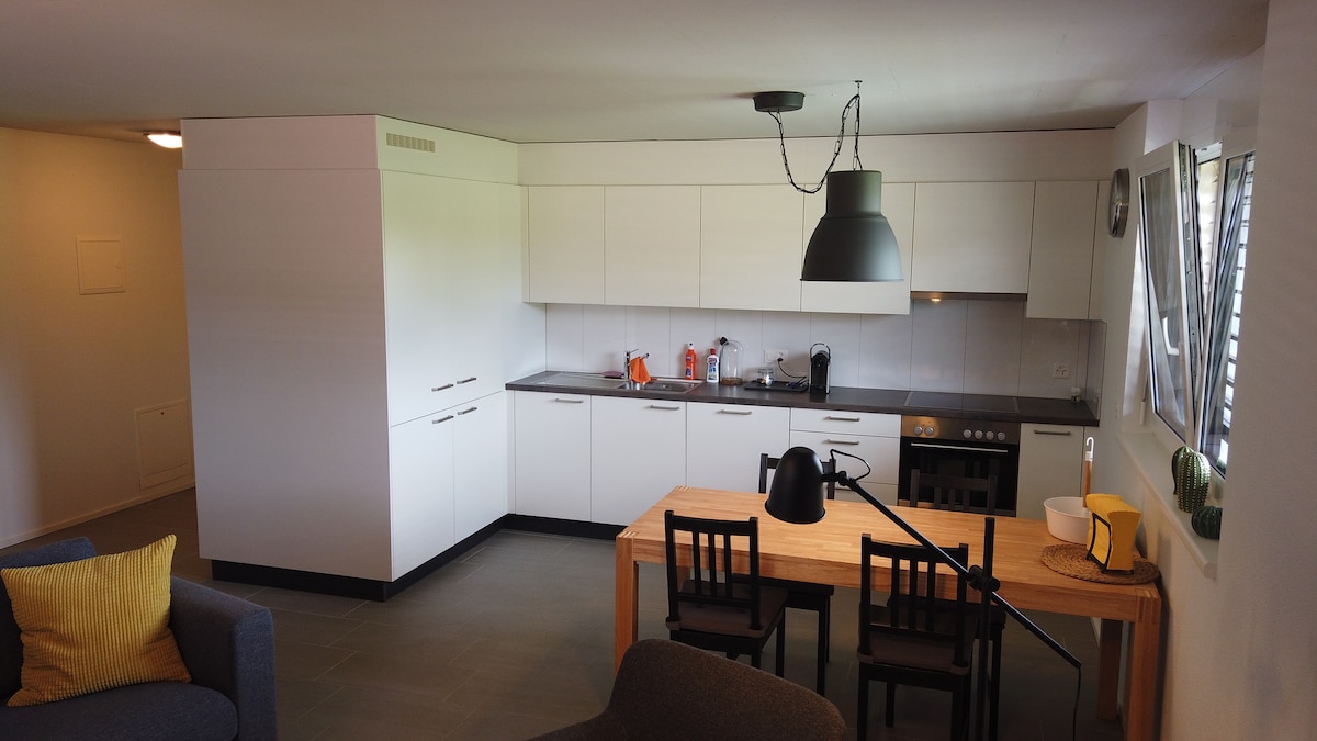 Світла квартира з ранку до вечора, ідеально підходить для комфортного перебування в Майше та насолоди природою. Ліжко розміру Queen size, 165 см, телевізор 4K, дуже швидкий Wi-Fi, великий душ, пральна машина та повністю обладнана кухня. Ідеально підходить для пар, професіоналів і любителів природи, недалеко від Швейцарії.