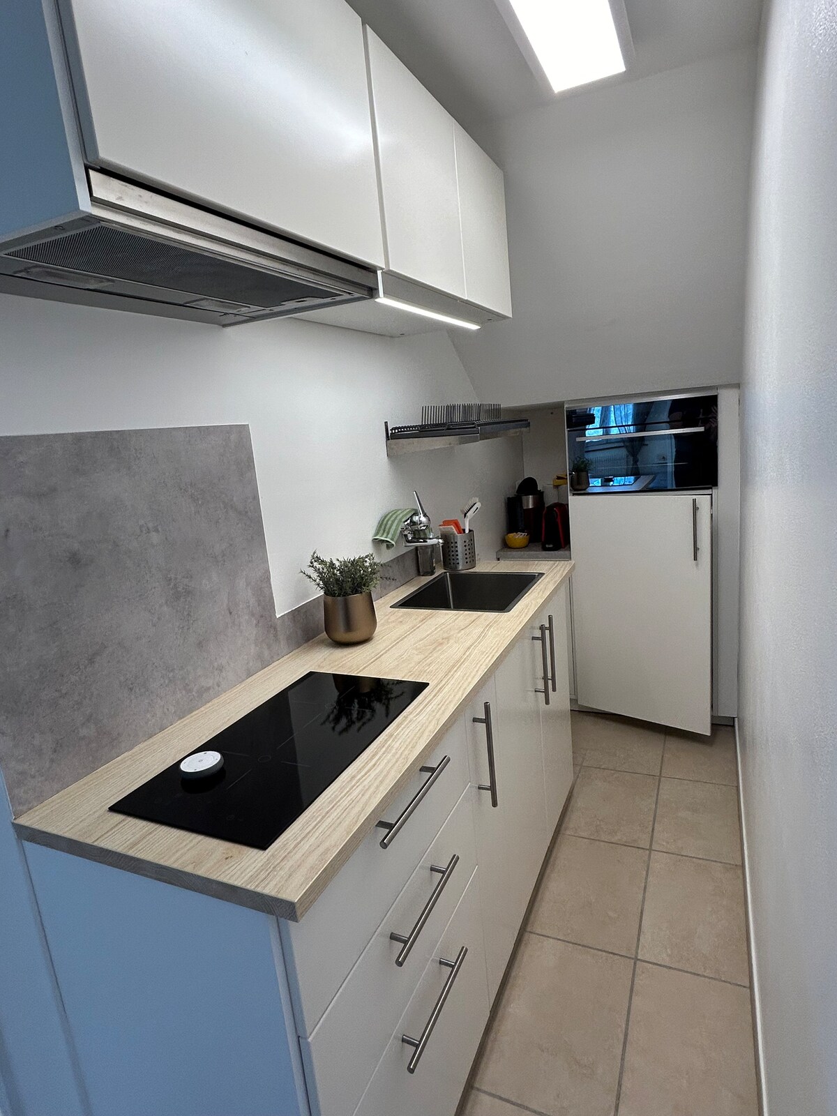 Відремонтована квартира на старій фабриці, лофт, яскравий, тихий і в центрі села. 2/4 особи, 1 спальня, велика вітальня з диваном-ліжком (2 місця), повністю обладнана кухня, посудомийна машина, пральна машина, ванна/душ, сад зі стільцями та столом, безкоштовне паркувальне місце
