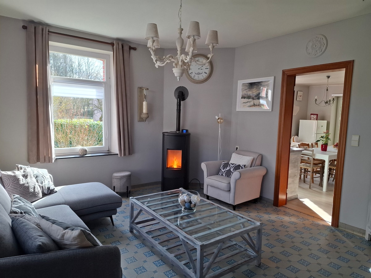 Ви зупинитеся в чудовому кам 'яному будинку в країні 1850 року, повністю відремонтованому в 2022 році. Gite на 2 рівнях з садом і фруктовим садом площею понад 3600 м². Спокійна і мирна обстановка. Приголомшливі краєвиди на плато Арденн і село Ойні. Вихід на південь. Висококласний будинок з усіма зручностями, які вам потрібні для перебування мрії. Вишуканий декор.