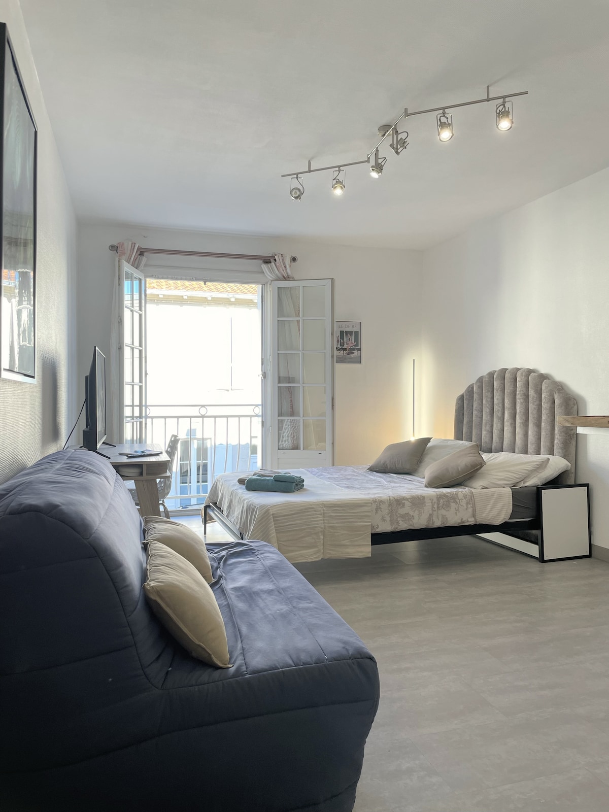 Très beau studio lumineux, 28 m2 offrant la possibilité d'y dormir jusqu'à 2 / 3 personnes ou 2 adultes et 2 enfants (1 lit double + un grand clic-clac); cuisine équipée (frigo, plaques électriques, four, micro-ondes, bouilloire, vaisselle); salle d'eau avec douche et toilettes séparées, lave linge. Mise à disposition de DRAPS, et SERVIETTES DE BAIN. Situé au première étage d'une copropriété sécurisée, au pied du marché central, et plein centre historique, le vieux port à 5 minutes à pieds.