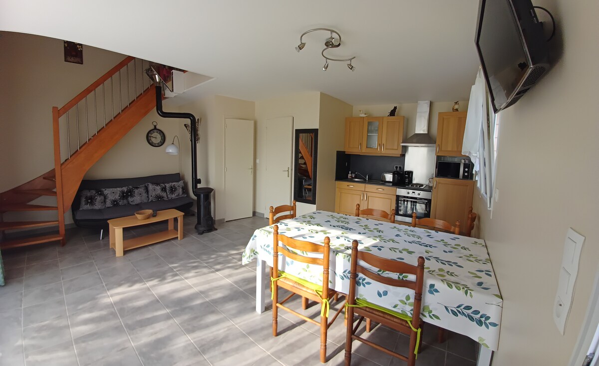 Ласкаво просимо до Ле-Муатьє-д'Аллон, тихого приморського міста, що межує з Барнвіль-Картере, ідеальним морським курортом. Лише 4 км від пляжів, з видом на Нормандські острови. Помешкання: • Яскрава вітальня з міні-кухнею • Ванна кімната, туалет Нагорі: • Зручна кімната, телевізор • Мезонін з диваном-ліжком. Зручно: • Безкоштовна парковка • Спільний доступ для пішоходів із домовласником Ми з нетерпінням чекаємо на вас!