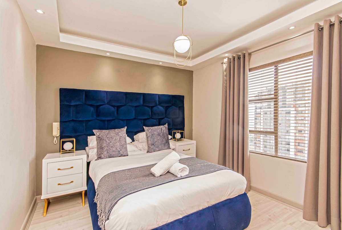 Відкрийте для себе спокій в нашій унікальній квартирі Airbnb, спокійному оазисі в центрі міста. Це продумане помешкання поєднує в собі сучасну естетику з затишним комфортом, пропонуючи спокійний відпочинок для вашого перебування. Гостям сподобається декор у стилі дзен, гарний балкон із панорамним видом і плюшеве ліжко king-size для максимального розслаблення. Пишні кімнатні рослини додають трохи природи, створюючи заспокійливу атмосферу. З першокласними зручностями та центральним розташуванням поблизу аеропорту ім. О. Р. Тамбо