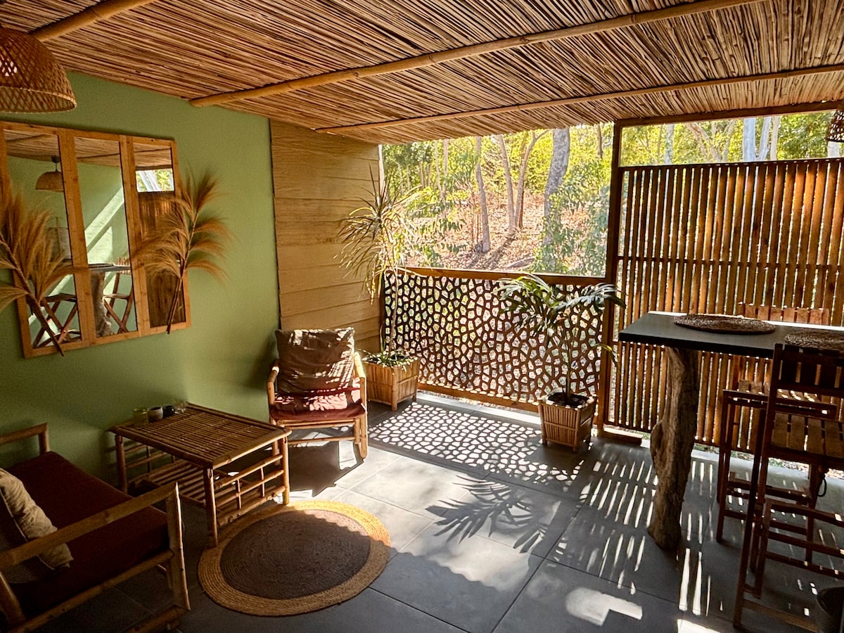 Це бунгало незалежне і добре звукоізольоване. Кондиціонер, функціональний, дозволяє ізолюватися всередині або насолоджуватися природою та пташиним співом на затіненій терасі. Розташований неподалік від місцевих магазинів та пляжу, немає необхідності сідати на автомобіль, щоб поїсти або прийняти ванну та насолодитися сутінками. Ландшафтні траси ідеально підходять для поєднання спорту та благополуччя