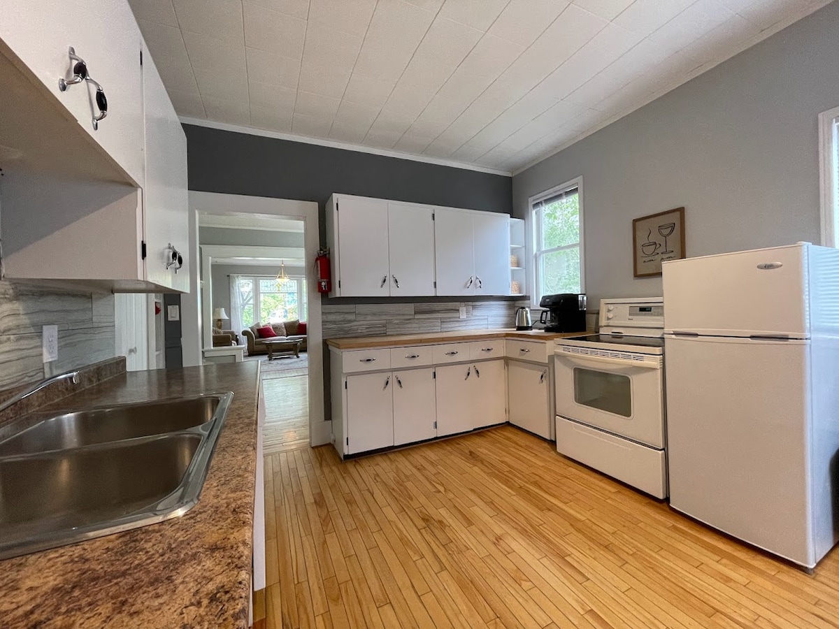 Понад 100 років в історичній Лондонській дорозі/парку Вікторія. Цей модернізований дуплекс може похвалитися 9-футовими стелями з добре укомплектованою кухнею та великим обіднім столом для збору. Три спальні розміру Queen size і ліжко зможуть комфортно розмістити 8 гостей. На головному поверсі є 2 ванні кімнати з душовою кабіною. Закритий задній ганок і невеликий огороджений патіо чудово підходять для домашніх тварин або прилягання біля вогнища. Помешкання розташоване в центрі, в середньому 3 хвилини їзди до магазинів і лікарні.