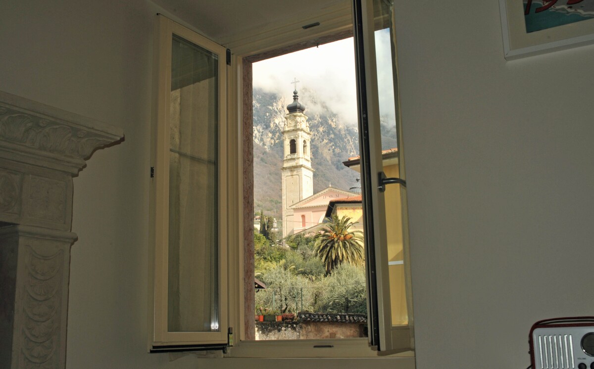 БУДИНОК Через дерев 'яні ворота ви заходите в невеликий романтичний двір з обідньою зоною на відкритому повітрі та портиком, який оточений стінами з природного каменю. Звідси ви потрапите до кухні/вітальні з обіднім столом та дров 'яною плитою. На першому поверсі знаходиться вітальня, а на другому - дві спальні та ванна кімната. З головної спальні відкривається фантастичний вид на озеро та Монте-Бальдо. Вранці кімната затоплена сонячним світлом.
