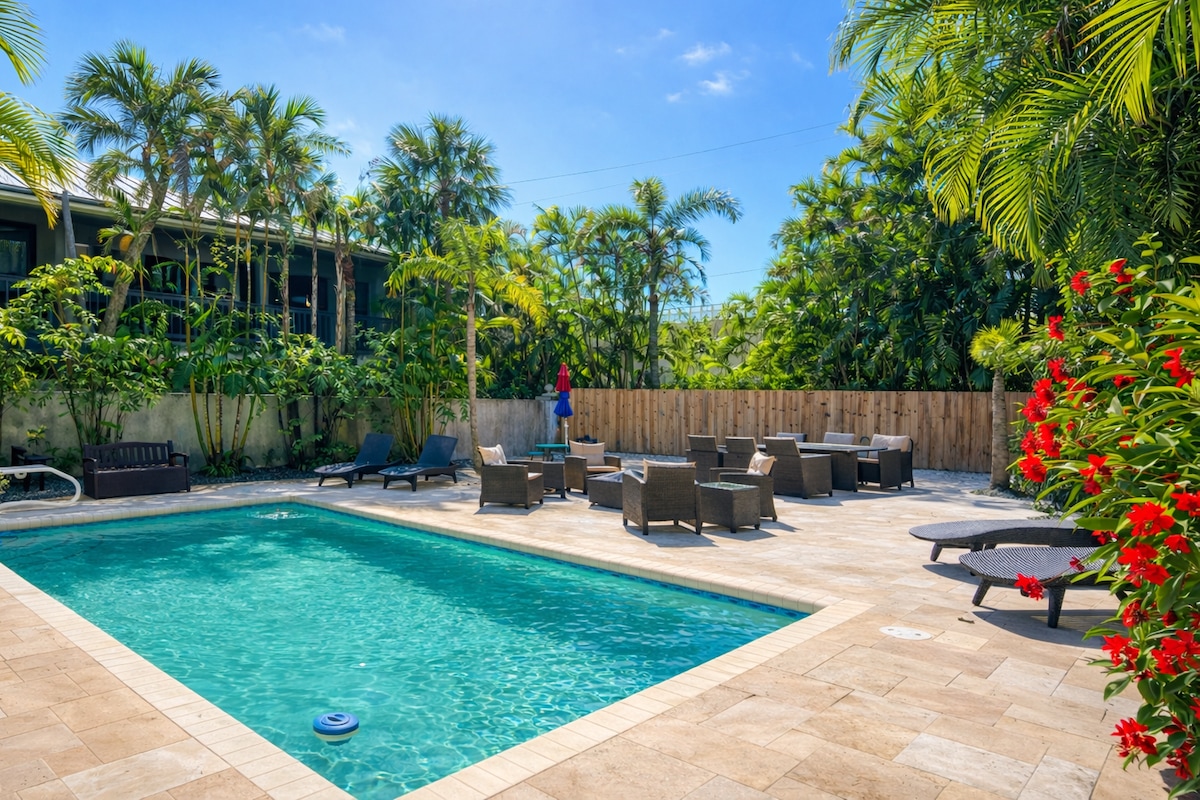 Beach Escape+Downtown | large yard/Heated pool