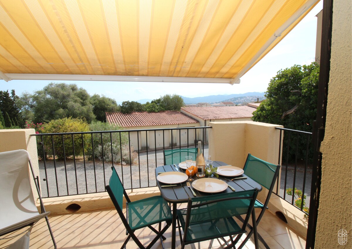 У нещодавній розкішній резиденції, дуже гарна квартира для 4 осіб, повністю обладнана (Wi-Fi),з міні-кухнею, їдальнею-вітальнею (диван-ліжко 160), спальня з ліжком 160 і ванною кімнатою, тераса з садовими меблями та засмагами з видом на гори та села, приватний гараж. Тиха резиденція, розташована в 200 м від усіх магазинів і піщаного пляжу Насолоджуйтеся винятковим рибним ринком щодня.