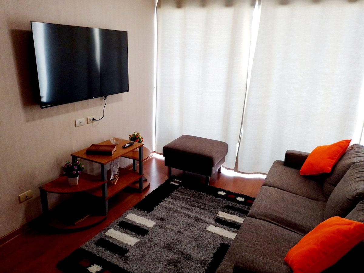 Супер добре розташована квартира в Суркільйо, недалеко від таких районів, як Мірафлорес, Сан-Ісідро, Сан-Борха та Сурко, недалеко від торгових центрів і великих проспектів, ідеально підходить для сімей, оскільки має 1 спальню з 55-дюймовим телевізором з ліжком queen-size, диваном-ліжком, повною ванною кімнатою, міні-кухнею, вітальнею з 86-дюймовим телевізором та усім необхідним для гарного перебування, 10-й поверх. Тут є спільна зона грилів, кімната Billas, тренажерний зал, кінотеатр, промислова пральня, гриль-зона (за окрему плату).