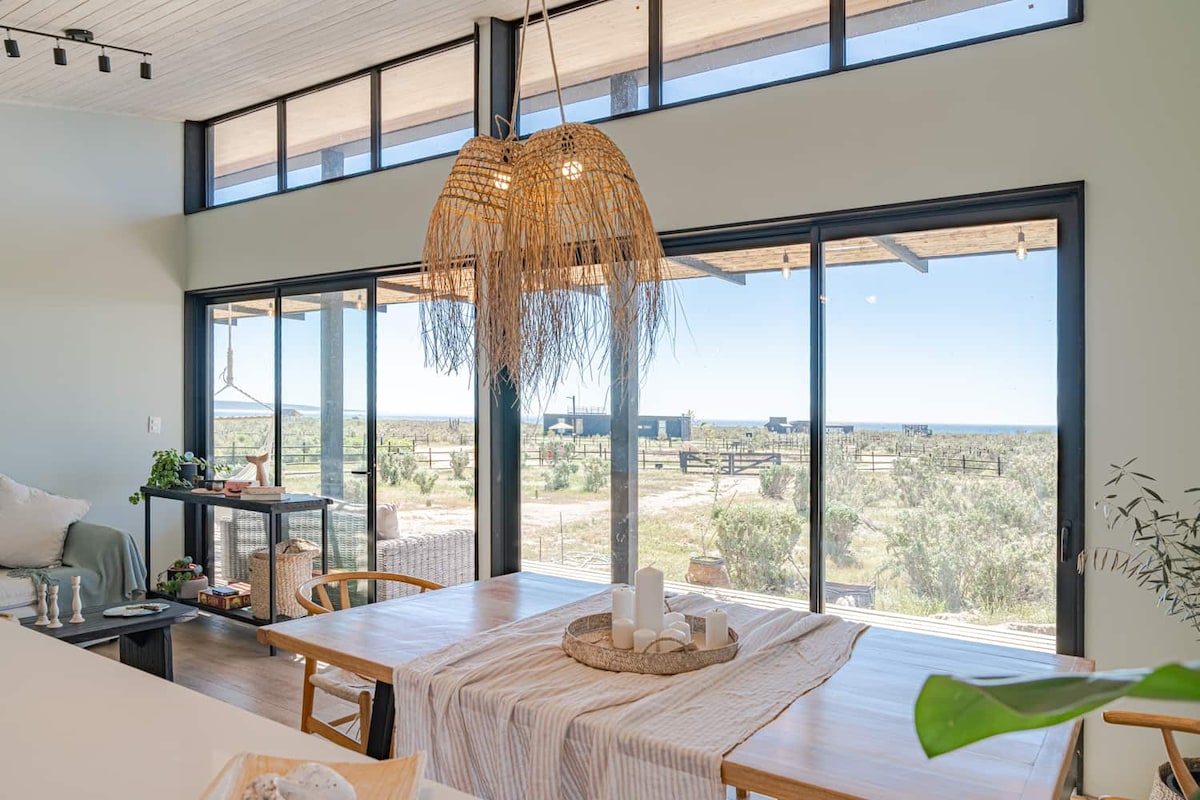 Vacaciona con tu familia y amigos en este hermoso y tranquilo lugar. Disfruta del campo y playa al mismo tiempo. Deléitate con un entorno totalmente natural. Cuenta con tres habitaciones y 3 baños, 2 camas matrimoniales y 2 camarotes, la sala tiene una cocina integrada con un mesón enorme para 10 personas La vista es dinámica, tanto de día como de noche, la luz y el viento hacen que se observen distintos paisajes desde el mismo lugar La terraza cuenta con parrilla y brasero