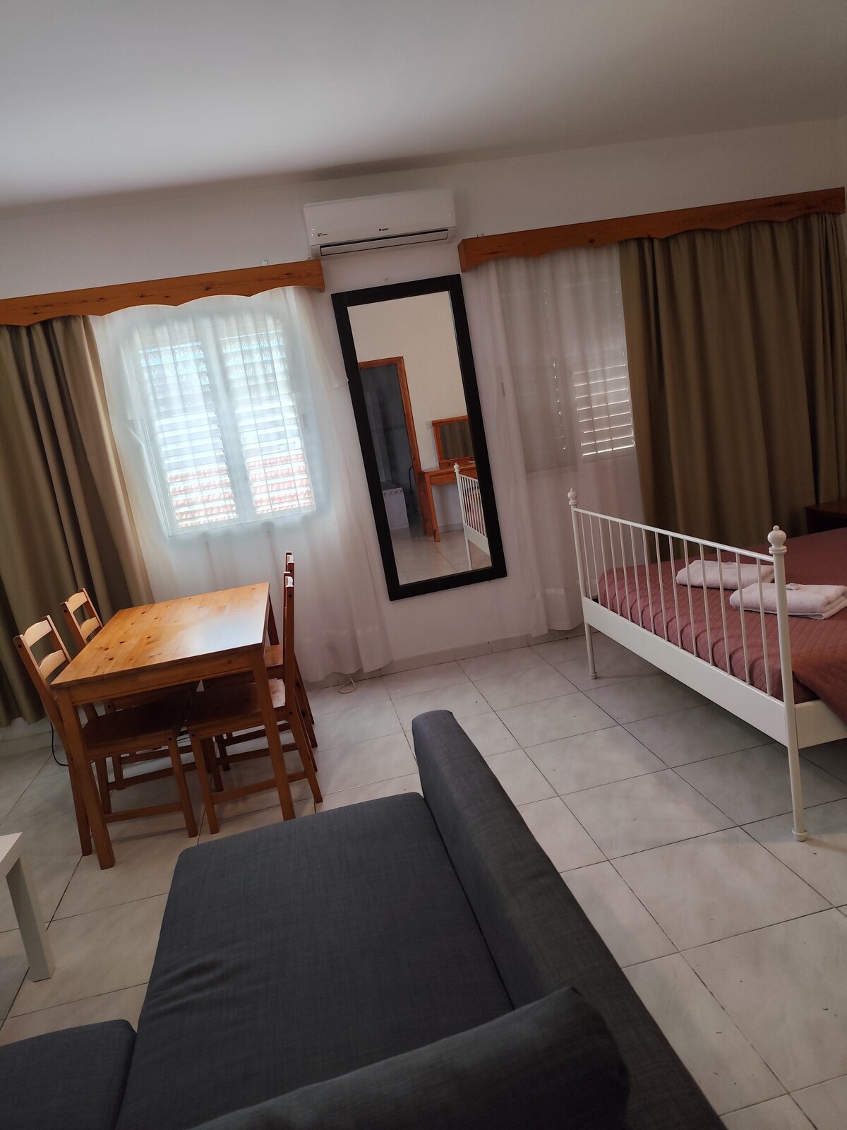 Простора нова сучасна квартира в історичному центрі, поруч із театром Ріальто, в 5 хвилинах ходьби від пляжів на березі моря та в 3 хвилинах ходьби від торговельної вулиці Лімасола, Anexartisias. Кілька хвилин ходьби до всіх зручностей, включаючи ресторани, бари та кафе, а також історичні пам 'ятки та пристань. Повністю обладнана кухня, пральна машина. Ліжка King size. Традиційний відкритий двір ідеально підходить для відпочинку на сонці та обіду на свіжому повітрі. Вітальня та спальні повністю обладнані кондиціонером.