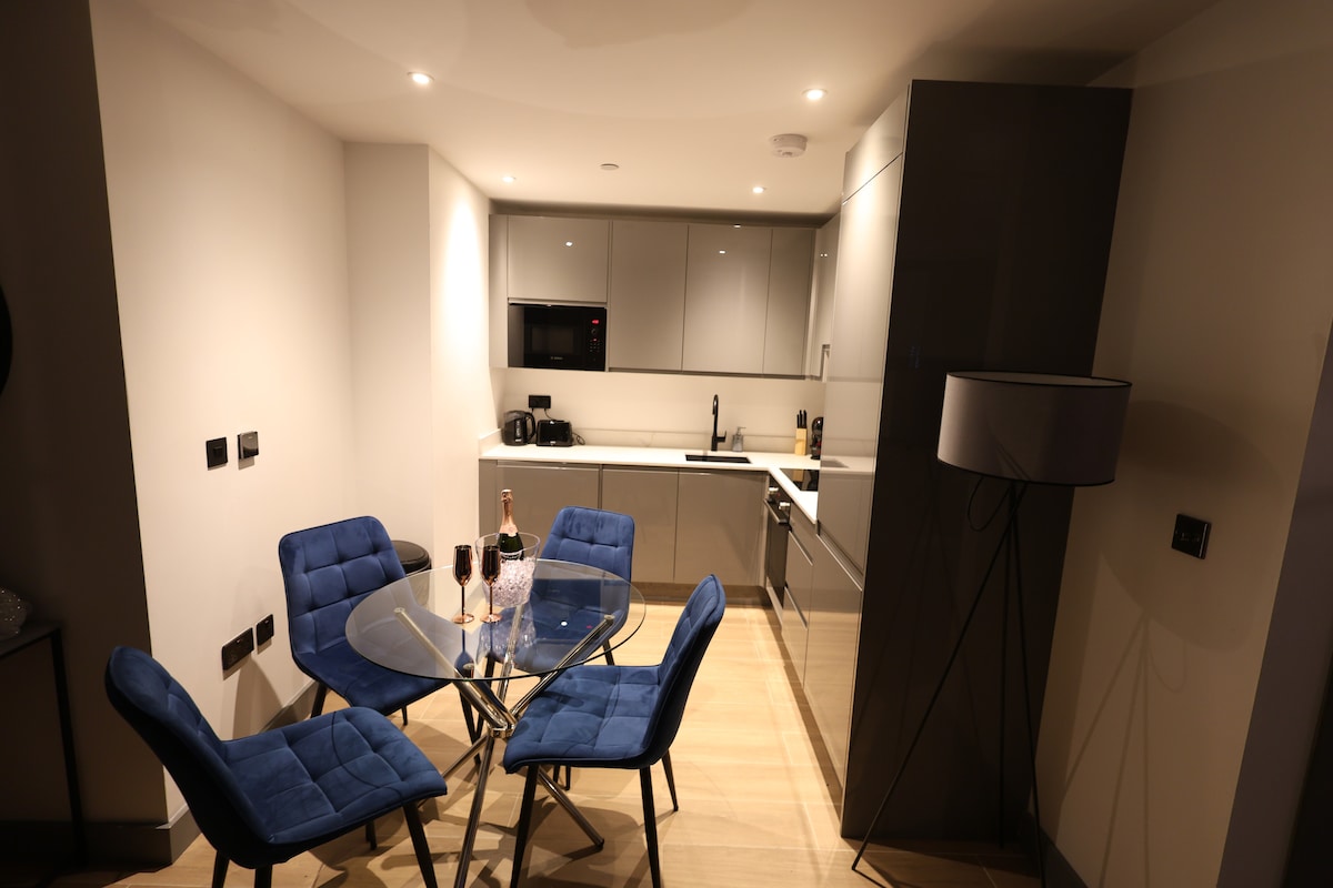 ✨ Designer 2BR/2BA near Canary Wharf 🔑 Self check-in/out 🌿 Balcony (2 chairs + table) 📶 Super-fast Wi-Fi + 📺 OLED TV 🧺 Brand new washer + dryer 🍳 Fully equipped kitchen 🌡️ Smart central heating 🛏️ Linens + towels + starter supplies 👶 Travel cot + high chair 🛒 Lidl & Tesco: 1 min walk 🚆 Westferry DLR: 11 min walk / 4 min bus 🚄 Canary Wharf (Elizabeth): 20 min walk / 5 min bus 🏢 ExCeL London: ~30 mins Tube/train 🎤 O2 Arena: ~30 mins Tube/train 🛍️ Regent Street: ~30 mins Tube/train