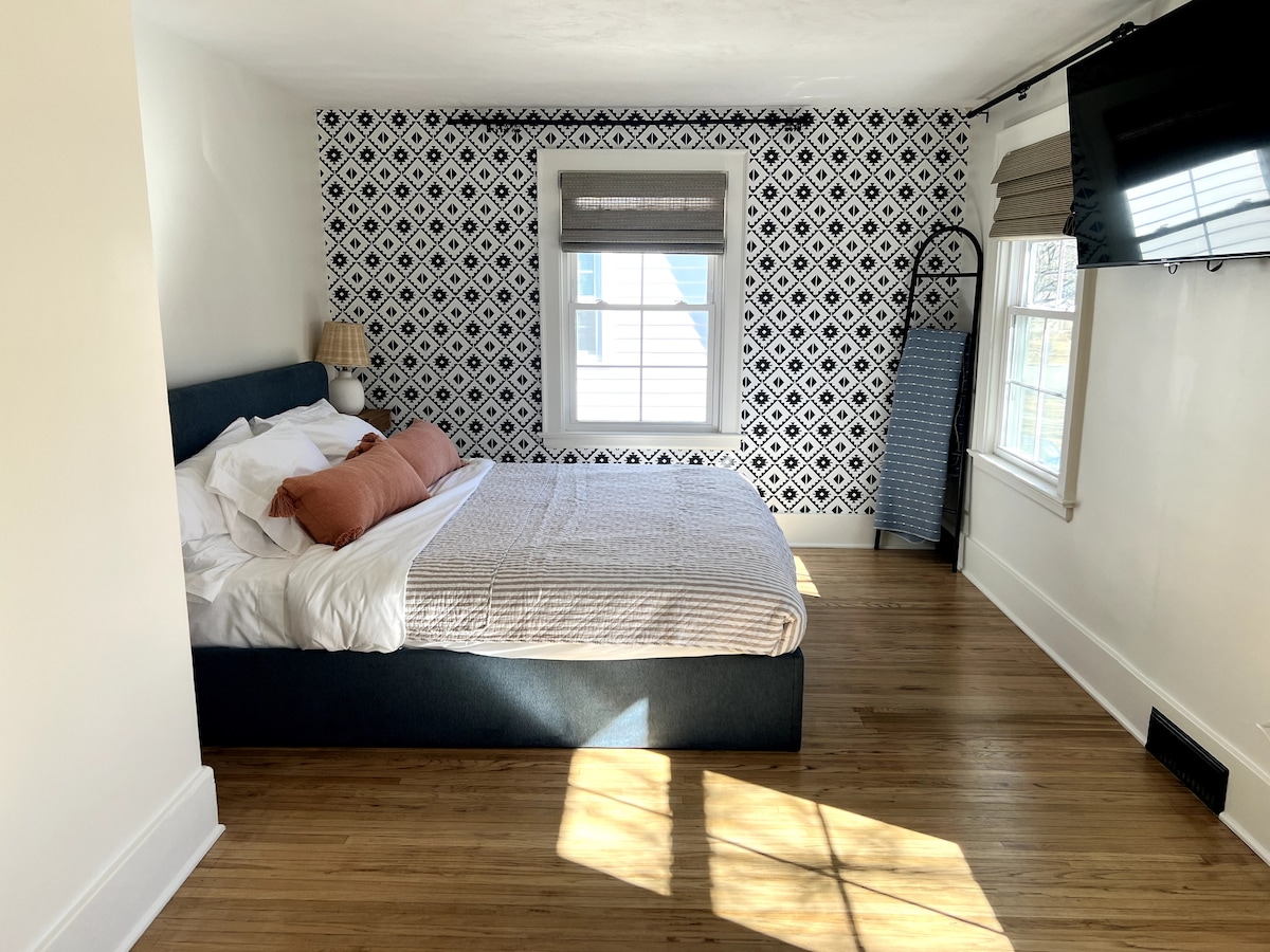 Enjoy a clean and stylish experience in the Juni Suite. Cook all your meals in the well equipped kitchenette, soak it up in the deep bathtub, and stay warm by the fireplace. A queen size memory foam bed and blackout roller shades will help you sleep soundly. The convertible sofa is easy to expand to a full size. Protect your vehicle in the off-street covered parking stall which is only a short walk to the entrance (7 stairs up and 13 down). Close to Union College/Shops.