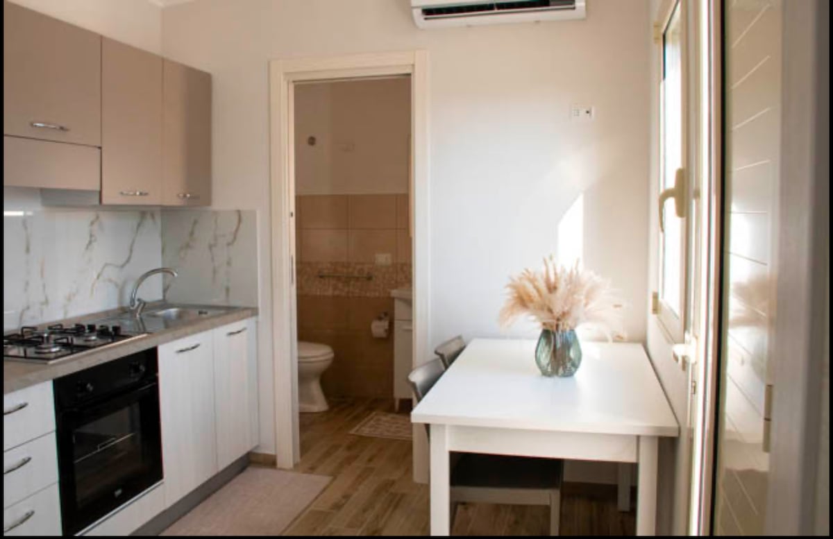 Будинок Квітів складається з кухні/вітальні, готової до використання, та спальні з двоспальним ліжком; велике вікно з видом на приватну терасу та кондиціонер охолоджують квартиру в найспекотніші дні; Тераса ексклюзивна та обладнана в розпорядженні гостей. Він знаходиться всього в 200 метрах від сільського поля: достатньо близько, щоб бути комфортним, і достатньо далеко, щоб не турбуватися в нічні години.