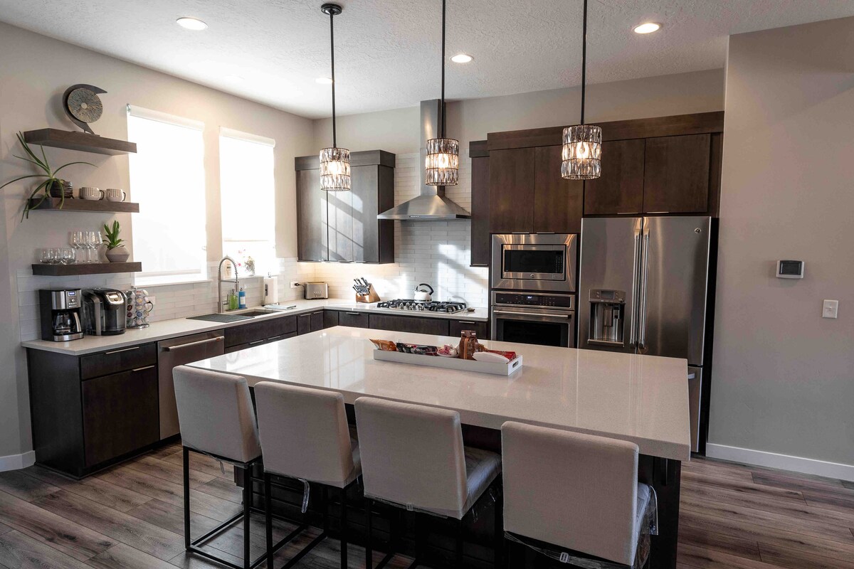Сучасне помешкання з гаражем на 2 автомобілі біля каньйонів Біг і Літл-Коттонвуд, поруч із центром міста, Парк-Сіті, Дір-Валлі Приблизно 28 хвилин до Сноуберда, Альта, Солітьюда та Брайтона. Прокиньтеся з приголомшливим видом на гори та доступом до приватної гідромасажної ванни з головної спальні з панорамним видом на долину! Готуйте на повністю обладнаній кухні або на грилі під критим патіо з газовим каміном Незалежно від того, чи ви тут для катання на лижах, піших походів, скелелазіння або їзди на велосипеді, ви почуватиметеся як удома з кожною деталлю!