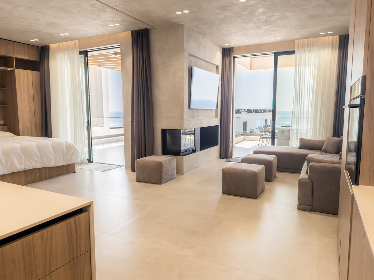 Наш люкс Deluxe Comfort – це місце для відпочинку в тихому районі з прекрасним видом на море. Ідеально підходить для індивідуальних мандрівників, пар і сімей, які шукають спокою та затишку. Всього в п’яти хвилинах їзди від центру міста та найближчих пляжів (рекомендується автомобіль), а 15 хвилин пішки також приведуть вас туди. Для вашої зручності на території є безкоштовний паркінг.
