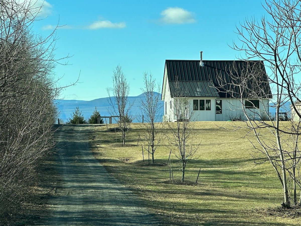Унікальний сучасний котедж із приголомшливими видами / ванна кімната, як спа / газовий камін / повністю обладнана кухня шеф-кухаря / стільниці з тальку / нові прилади преміум-класу. Повна конфіденційність Високі стелі, стіни ручної оштукатури, антикварні двері. Скляні французькі двері відчиняються на приватну терасу Насолоджуйтеся великою горою Катскілл і сезонним видом на річку Гудзон. У великій ванні є душова кабіна зі скляними дверима з плиткою та ванна. З вогнища Філдстоун відкривається вид на Катскілл!