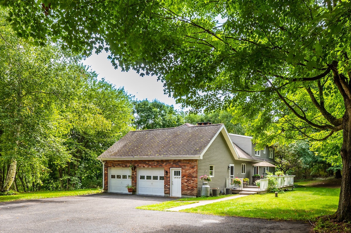 Наш тихий будиночок із 3 ліжками та 2 ванними кімнатами - це повністю приватний лісовий рай на тихій сільській місцевості. Частина усамітненого відпочинку, частину сільського курорту, заміський будинок у стилі 70-х років, він знаходиться всього в 2 годинах їзди від Нью-Йорка та в 20 хвилинах їзди від Гудзона. Розслабтеся на 50 акрах недоторканого лісу та території, сезонний басейн із солоною водою та баром, фінська сауна та гідромасажна ванна на 7 осіб (відкрита цілий рік), відкрита кухня та вітальня шеф-кухаря та сонячний майданчик з видом на нескінченну природну красу. Перегляньте більше @sunbeamlodge в Instagram.