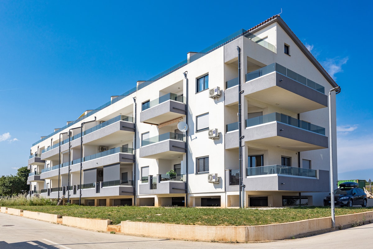 Ця унікальна нова квартира в Медуліні з приголомшливим видом на море розташована в тихому районі всього в 300 метрах від пляжу. У помешканні з кондиціонером є спальня, вітальня, повністю обладнана кухня з холодильником та посудомийною машиною, ванна кімната з душем , пральна машина та фен. Безкоштовна парковка та Wi-Fi. Найближчі цікаві місця - пляж Кажела, пляж Бельведер і пляж Бієка. Найближчий аеропорт знаходиться в Пулі, за 15 км.