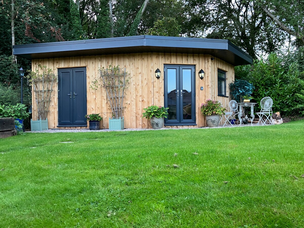 Нещодавно побудована красива окрема квартира, розташована на першому поверсі окремої будівлі в межах сімейного будинку. Велика вітальня/спальна зона, включаючи розкішне ліжко розміру King size; зону відпочинку та засоби для приготування чаю та кави. Нещодавно встановлена кухня з холодильником: духовкою та мікрохвильовою піччю. Великий смарт-телевізор. Додаткове ліжко робить люкс ідеальним для сімей. Окрема ванна кімната з електричним душем. Окрема зона відпочинку на вулиці з видом на прекрасну сільську місцевість Монмутшира