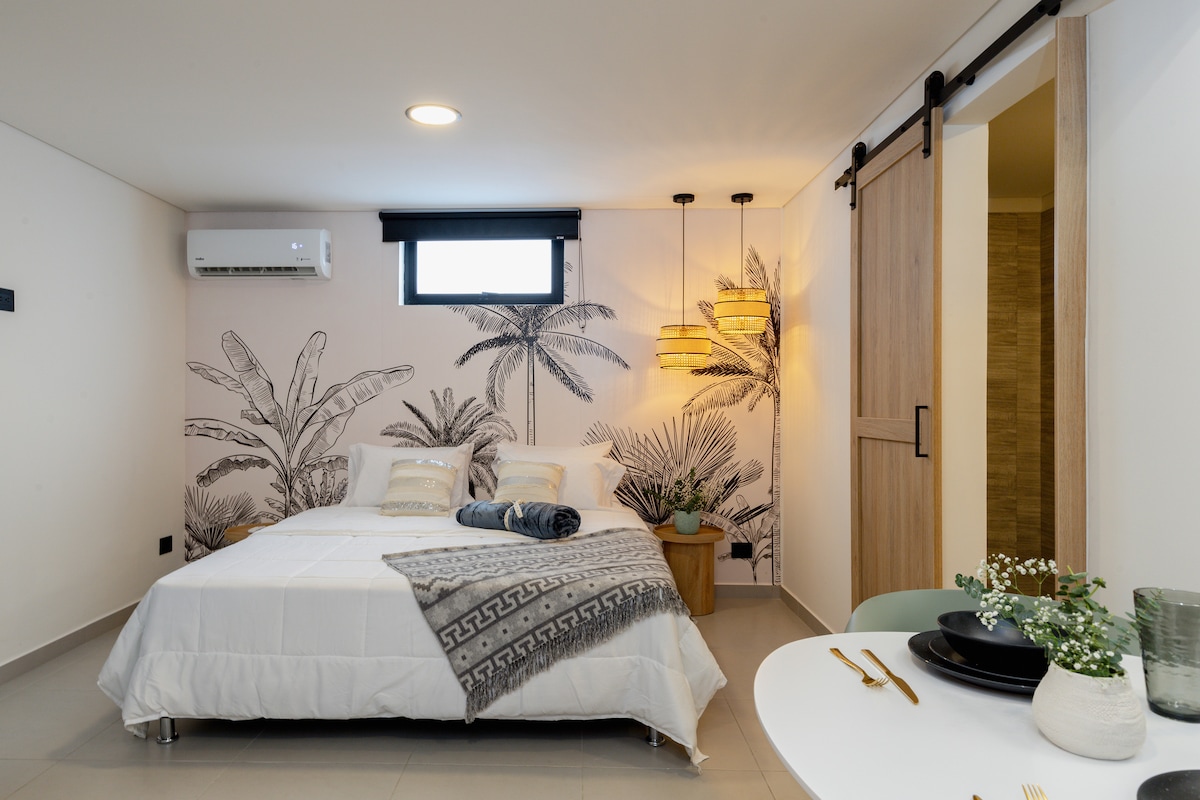 Сучасна квартира на 17-му поверсі готелю Urban Studios з дивовижними краєвидами Медельїна. Всього в 10 хвилинах ходьби від торгового центру Tesoro Mall і недалеко від найкращого нічного життя, але в спокійному і приємному районі. До ваших послуг комфортне двоспальне ліжко розміру King size, повністю обладнана кухня, кондиціонер, пральна машина, газова сушарка, швидкий Wi-Fi та доступ до ресторану Al Alma з обслуговуванням номерів. У будівлі є басейн, джакузі, тренажерний зал, робочі кімнати та цілодобова охорона.