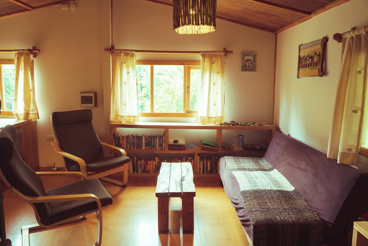 Зруб для 2 осіб, розташований у привілейованому природному середовищі, пропонує спокійний відпочинок для тих, хто хоче втекти від повсякденної метушні та спілкування з природою. Цей зруб, оточений місцевими деревами, - ідеальне місце для відпочинку та відновлення сил. Ідеально підходить для пар, які шукають романтичну відпочинок, або для тих, хто хоче дослідити природну красу Чилое. - У зрубі немає телевізора та WI-FI, концепція - відключення.