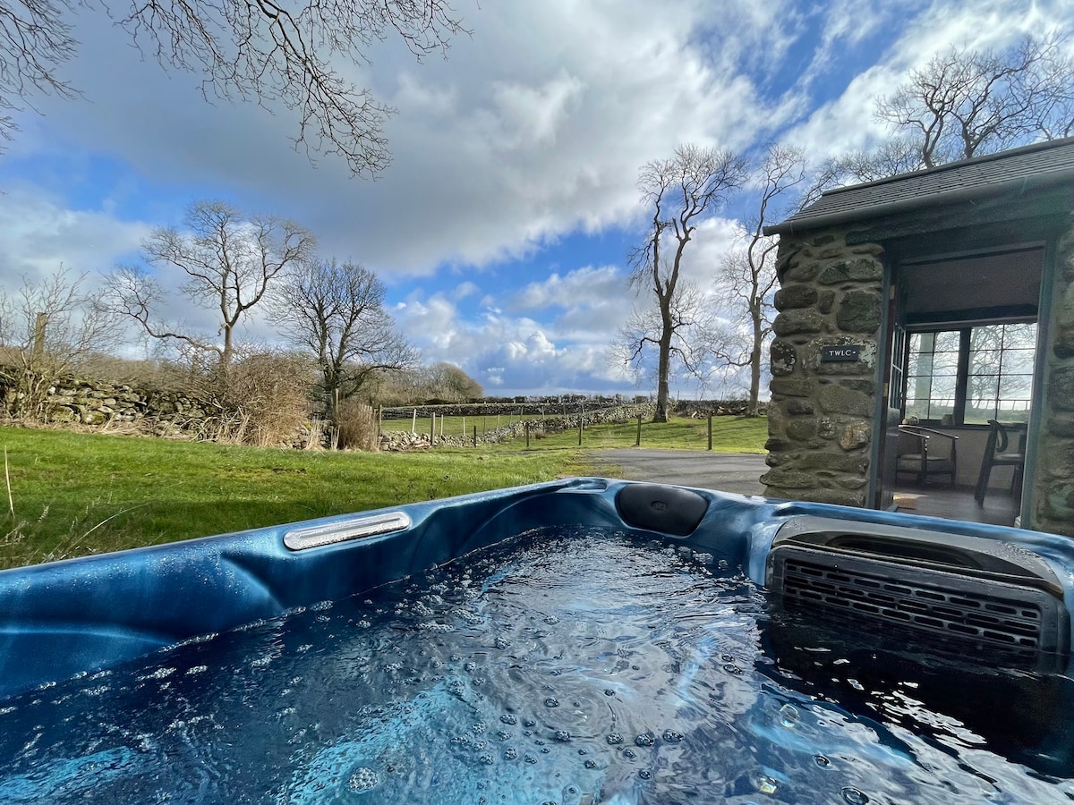 Симпатичний котедж на працюючій фермі в Пен-Лліні, Північний Уельс, з приватною гідромасажною ванною з видом на нашу ферму та ліс. Між горами та морем ви достатньо близько до всього, але достатньо далеко для спокійного відпочинку. Насолоджуйтеся прогулянками до нашого приватного стародавнього лісу та вздовж сільських смуг.