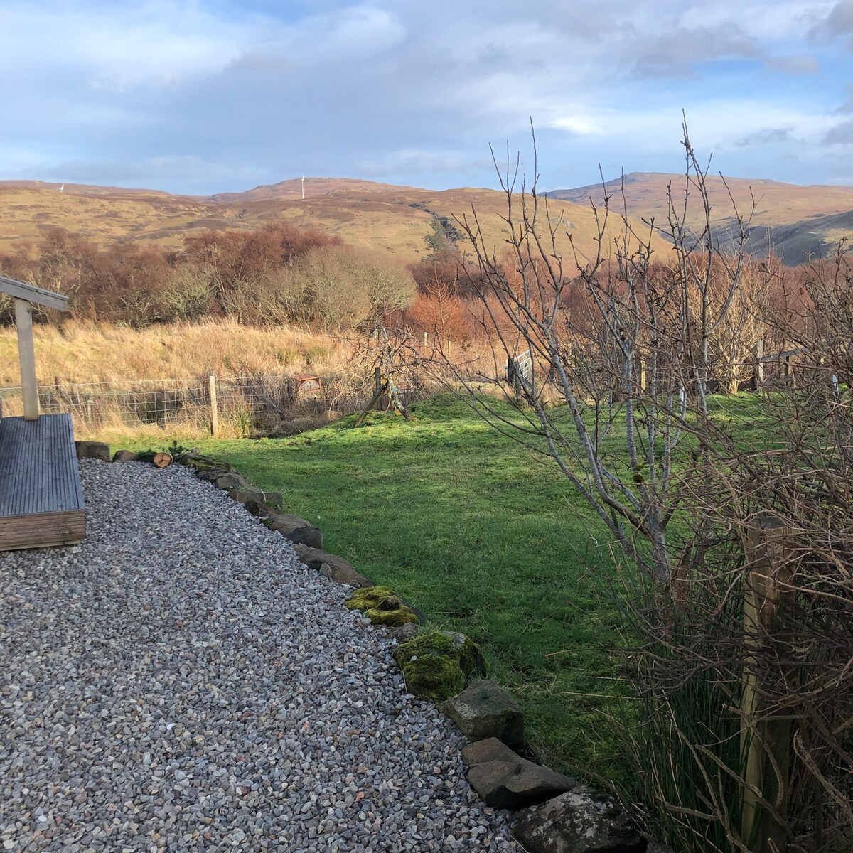Цей затишний розкішний відпочинок може похвалитися 2 спальнями розміру King size, душовою кімнатою, ігровою кімнатою та кухнею/вітальнею з видом світового класу на озеро Куїллін-Гіллз, скелі Таліскер та острів Ром. У цьому помешканні на березі є приватний сад і парковка, а також прямий доступ до берега та прогулянок. Чудово підходить для спостереження за місцевою дикою природою. Це помешкання з самостійним харчуванням, і на кухні є всі кухонні приміщення, а також деякі базові продукти харчування, тому після прибуття ви можете просто відпочити.