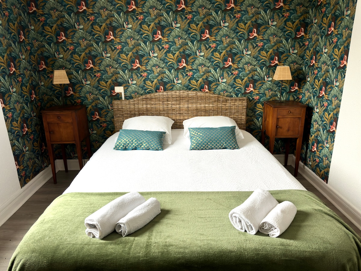 Ця кімната прикрашена вишуканістю, смаком і увагою до деталей. Він унікальний і пропонує особливий світ, який просто хоче розкрити свої секрети. Він розташований у прибудинкових територіях Château du Rollin, пропонуючи вам спокій і умиротворення. Поруч із виходом з центру Орлеана та A10 та A71. У кількох хвилинах від історичного центру та берегів Луари. Телевізор, високошвидкісний Wi-Fi та достатня безкоштовна парковка Ліжко queen-size 160 - Душ - Рушники - Фен Люб 'язний лоток