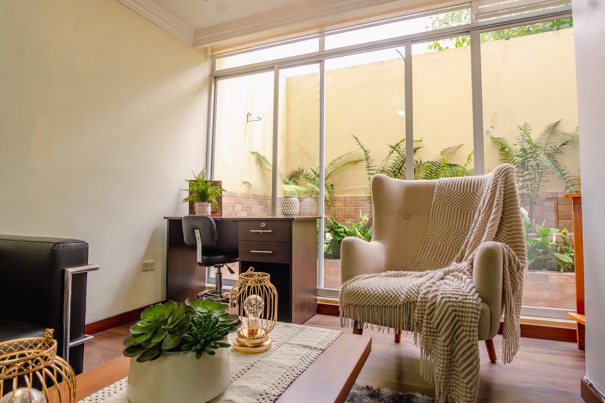 Приїжджайте і відчуйте гармонію з природою. Пориньте в красу тропічних пейзажів і андських гір. Ця приватна квартира з 2 спальнями обладнана окремою кухнею, ванною кімнатою та внутрішнім двориком. У головній спальні є дуже зручне ортопедичне ліжко queen-size з місцем для другого односпального ліжка за запитом. Друга спальня має односпальне ліжко або може бути перетворена на офіс або терапевтичний простір за запитом