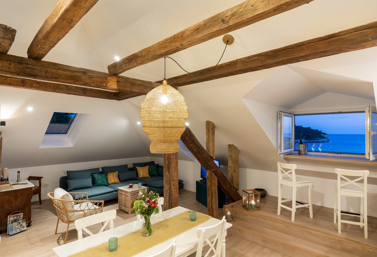 Квартира Тулліо, розташована на даху сімейного будинку над Старим містом, є гордим лауреатом премії журналу Home and Design як найкраща мансардна квартира Хорватії за 2017 рік. Ми величезно пишаємося нашим досягненням, оскільки це сімейне (рекламне)підприємство, де ми поєднали свої бачення та декоративні блискавки без будь-якої професійної допомоги в проектуванні нашого простору. Насолоджуйтеся своїм помешканням далеко від дому, ми тут, щоб розширити нашу теплу гостинність і зробити ваше свято пам 'ятним.