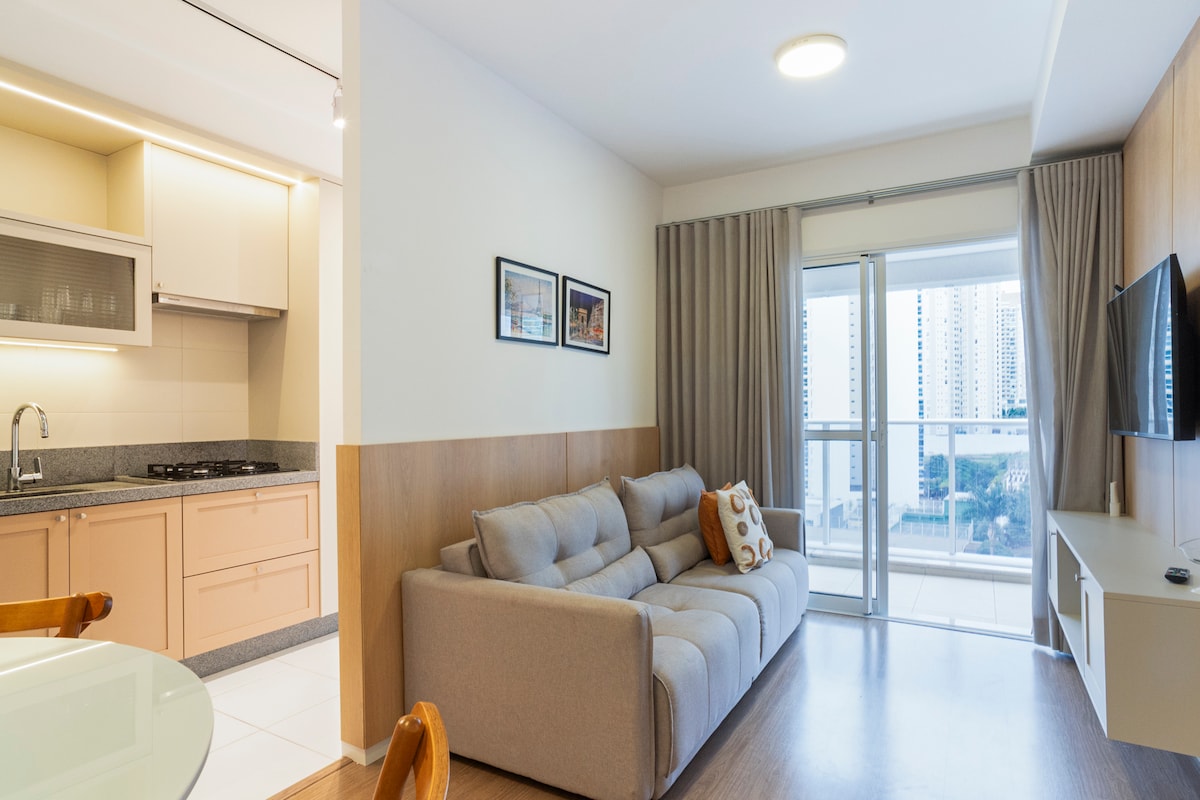 Елегантна та комфортабельна квартира в Глеба Палгано, ідеально підходить для тих, хто шукає практичність та вишуканість. У ньому є паркувальне місце, швидкісний Wi-Fi, ліжко розміру king-size, кондиціонер і повністю обладнана кухня. Привілейоване розташування, недалеко від торгового центру Catuaí та основних визначних пам’яток регіону. Ідеально підходить для короткострокового або тривалого перебування, пропонує комфорт і зручність в одному з найкращих районів міста.